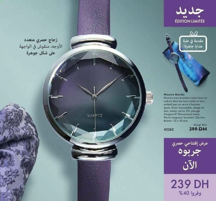 ✅متشکل از یک بند نرم و باریک بنفش و صفحه ای با الهام از نورهای روشن شمالی.