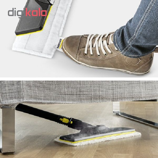 بخارشو یکی از قدرتمندترین ابزار نظافت هر محیطی است که با استفاده از آن در کمترین زمان، میتوان مکان وسیعی را به بهترین شکل ممکن شست. در حقیقت بخارشوها به علت ایجاد بخار و حرارت بسیار بالایی که دارند؛ سطوح را از شر میکروبها و ویروسها پاکسازی میکنند. بخارشو کرشر مدل SC 5 EASY FIX دقیقاً همان چیزی است که هر فردی در منزل خود به آن نیاز دارد. نسل جدید بخارشوهای کرشر تولید سال 2017 به بعد هستند که با تکنولوژی easy fix و حولههای زمینشوی و دیوارشوی بزرگتر تولید شدند. با بخارشوی کرشر مدل SC 5 EASY FIX حتی سختترین و مقاومترین لکهها و کثیفیها در امان نخواهند بود که این مزیت مدیون عملکرد خلاقانه سیستم Vapo Hydro کرشر است. بخارشوی کرشر مدل SC 5 EASY FIX دارای مخزن قابل جداشدن است. همچنین میتوان در هنگام استفاده از دستگاه، مخزن را آبگیری کرد که این مزیت این اجازه را به کاربر میدهد که بدون وقفه بتواند از دستگاه استفاده کند.