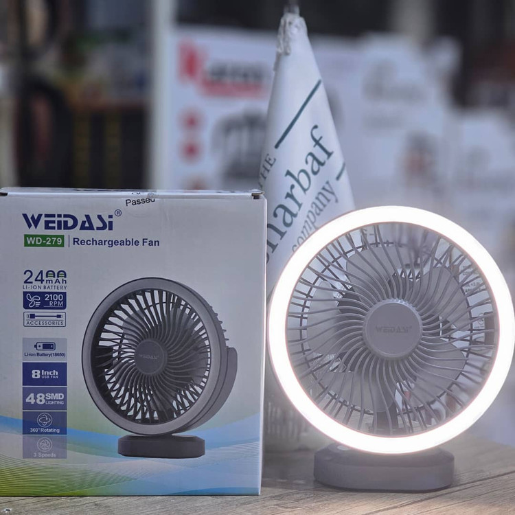 پنکه شارژی ۸ اینچ ویداسی مدل WD-279، یک محصول بینظیر برای مشتریان شماست. 🌬️ این پنکه با باتری لیتیوم قدرتمند و قابلیت چرخش ۳۶۰ درجه، هوای تازه را برای مدت طولانی فراهم میکند.