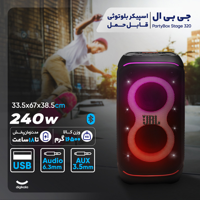 شرکت JBL همواره در زمینهی تولید تجهیزات صوتی پیشگام بوده است. پارتی باکس JBL با صدای قدرتمند و باکیفیت، توجه را به خود جلب میکند و این بار با Stage 320 توانسته تمام نیازهای شما را برای داشتن تجربه شنیداری متفاوت برآورده کند.