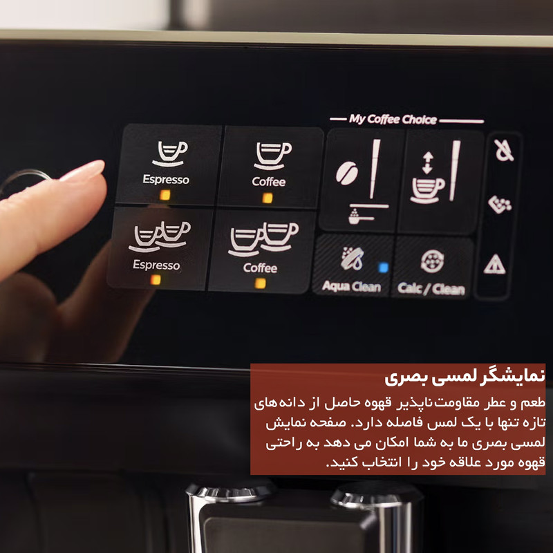 این اسپرسوساز به یک نمایشگر دیجیتال LCD مجهز است که انتخاب انواع نوشیدنیها را برای شما ساده میکند. شما میتوانید میزان عطر و طعم قهوه را مطابق سلیقه خود تنظیم کرده و از گزینههای مختلف نوشیدنیهای گرم مانند اسپرسو، کافه لاته، کاپوچینو و شیر گرم لذت ببرید. نازل بخار این دستگاه برای تهیه کف شیر و کاپوچینوهای حرفهای مناسب است. علاوه بر این، با تنظیمات آسان برای تمیزکاری و فیلتر AquaClean، دستگاه را همیشه در وضعیت بهداشتی و آماده به کار نگه خواهید داشت.