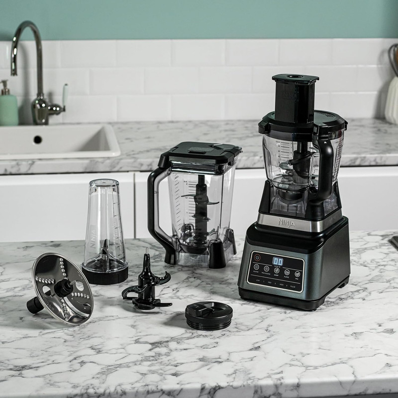 غذاساز نینجا مدل BN800 یک محصول خوش ساخت و مدرن از برند نینجا میباشد که خریداری آن، شما را از هرگونه محصول مشابه دیگر بی نیاز میسازد. به لطف موتور 1200 واتی با بیشترین سرعت چرخش 21000 دور در دقیقه این محصول، شما میتوانید انواع مواد غذایی را در کمترین زمان ممکن تهیه کنید و لذت ببرید. این دستگاه غذاساز نینجا مدل BN800 علاوه بر غذاساز، یک اسموتی ساز و مخلوط کن نیز هست و در عین پیشرفته بودن، کار کردن با آن بسیار آسان است. لازم به ذکر است که شما با داشتن آن میتوانید با بهره گیری از برنامه های مختلف آن از جمله تهیه اسموتی، پوره کردن، خرد کردن، به هم زدن، مخلوط کردن میوه ها یا مغزها، لذیذ ترین غذاها و نوشیدنی ها را تهیه کنید. بدنه این محصول از جنس پلاستیک بوده و ظاهری شیک با ترکیب رنگ خاکستری و مشکی دارد که جذابیت محصول را نه چندان افزایش داده است. به لطف کاسه 1.8 لیتری این غذاساز، امکان تهیه انواع مواد غذایی در حجم بالا برای شما فراهم میشود. این غذاساز نینجا مدل BN800 ابعاد جمع و جوری دارد که حمل را برای شما آسان میکند، همچنین فضای زیادی را درآشپز خانه اشغال نمیکند. پارچ غذاساز در برابر ضربه مواد غذایی سفت از جمله یخ مقاوم است، چرا که جنس آن از پلاستیک ضد ضربه میباشد. همچنین ظرفیت این پارچ 2.1 لیتر میباشد و برای تهیه انواع سس ها، نوشیدنی و اسموتی ها مناسب میباشد. برای این غذاساز از برند نینجا تیغه 6 پره و تیغه 4 پره در نظر گرفته شده است که با توجه به نیازتان میتوانید آنها را به کار ببرید. ضمناً این تیغه ها از استیل ضد زنگ ساخته شده اند و در برابر ضربه و خوردگی مقاوم هستند.