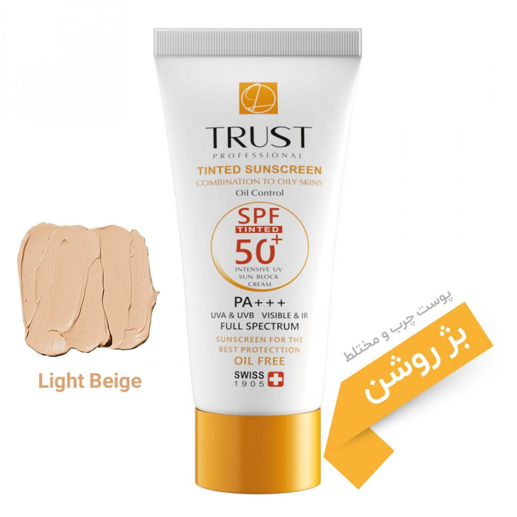 کرمهای ضدآفتاب رنگی تراست با SPF50+ از مرغوبترین و جدیدترین مواد اولیه موثره دارای حداکثر حفاظت دربرابر پرتوهای مضر خورشید ساخته شدهاند؛ این کرم با وجود بهرهمندی از بافتی سبک، دربرابر آسیبهای وارده توسط نور خورشید به خوبی از پوست محافظت و با مهار رادیکالهای آزاد از تخریب سلولهای پوستی جلوگیری میکند. همچنین با مصرف این محصول، بدون بسته شدن منافذ پوستی و ایجاد خلل در تنفس سلولهای پوستی، ضمن کنترل چربی، پوستتان آبرسانی میشود.